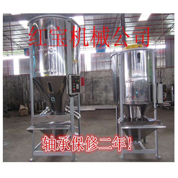 是利用螺桿的快速旋轉將原料從桶體底部由中心提升至頂端,再以傘狀飛拋散落,回至底部,這樣原料在桶內上下翻滾攪拌,短時間內即可將大量原料均勻的混合完畢。Bvx塑料攪拌機|臥式塑料攪拌機|立式塑料攪拌機|螺旋上料機|佛山紅寶塑料攪拌機公司